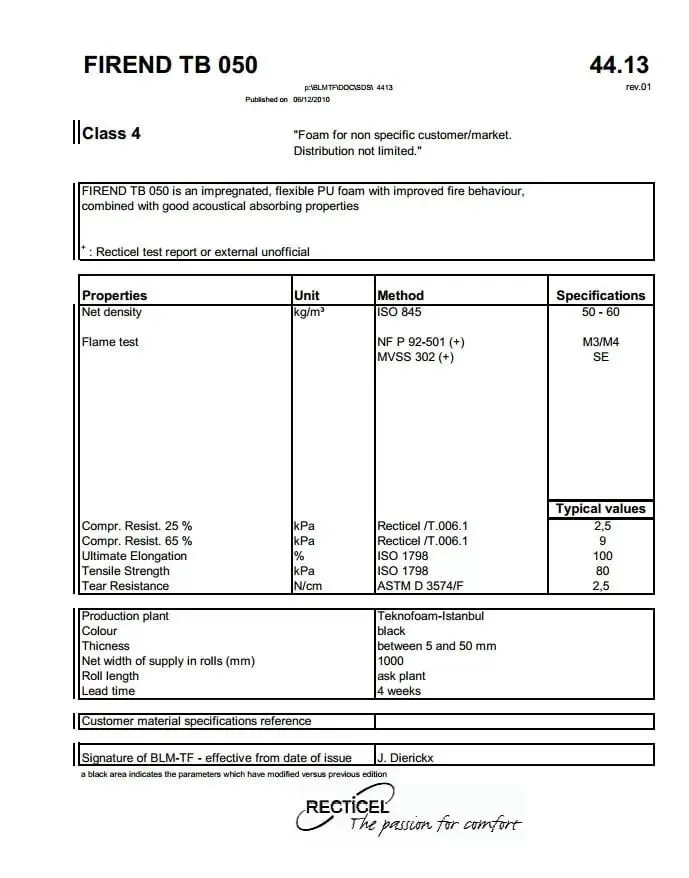 70 DNS Akustik Sünger Yanmazlık Sertifikası