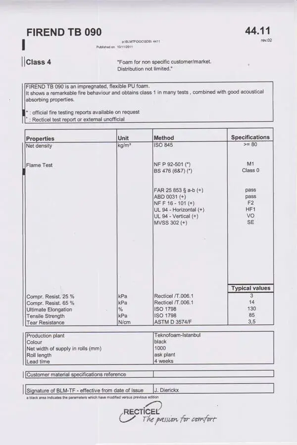 90 DNS Akustik Sünger Yanmazlık Sertifikası